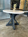 Expertly crafted for lasting durability, this 3-foot round dining table boasts a solid wood maple top that adds warmth and charm to any room. The chalk gray finish complements the sleek black metal base for a modern touch. Custom-made and ready to ship, this table is the perfect addition to any dining space.