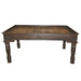 1900s Teak wood door cladded with brass foil has been thoughtfully repurposed to craft this unique Dining Table. The geometric squares are bordered by brass spikes giving this table a transitional look. It features the original brass latch adding to the authenticity of this eclectic Dining table. The elegant door is framed in solid wood and is held firmly by hand carved decorative legs.