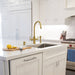 Two-Handle Brushed Gold Widespread Kitchen Faucet with Side Sprayer-AK96766-BTG
