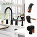 Two-Handles Matte Black & Rose Gold Widespread Kitchen Faucet with Side Sprayer - AK96866-BLRG