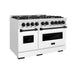 ZLINE 48"Classic Gas Range, Convection Gas Oven, Satin Stainless Steel, White Matte Door, Accents CGRSZ-WM-48-CB