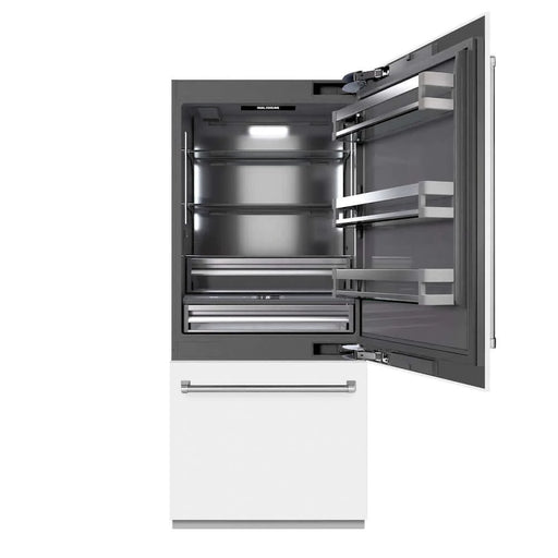 ZLINEZLINE 36" Built-In Bottom Freezer Refrigerator, Water Dispenser, Ice Maker, White Matte, Graphite Gray Interior GRBIT-WM-72 Luxury isn...