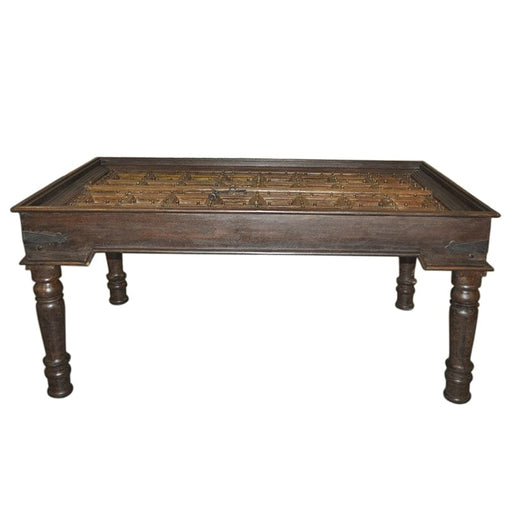 Far PavilionsDimensions: 72" W x 42.5" D x 33" H 1900s Teak wood door cladded with brass foil has been thoughtfully repurposed to craft this unique Dining Table...