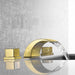 This faucet features two handles for precise control over water temperature and flow. The handles are also crafted from brass and finished in brushed gold, complementing the spout and creating a cohesive look.