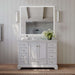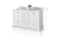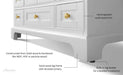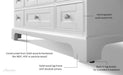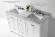 Reflecting Beauty and Elegance. The Audrey Collection is an articulated French Classic design that is skillfully handcrafted. From selecting quality wood to using the most durable soft-close hardware, no details were overlooked in crafting the Audrey vanity set. The vanity set includes a furniture style cabinet, imported Italian Carrara White marble top or White Quartz top with a 4 inch backsplash, wide rectangular undermount basin, solid wood dovetailed drawer boxes, soft-close doors & drawers and brushed nickel hardware. Complete the look with our mirrors which are sold separately.