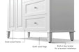 Rich in Tradition with Ample Storage. The Hannah Collection's refined form and elegant lines brings beauty to any space. With its 3 large drawers you can store practically all of your bath ware in one place. From selecting quality wood to using the most durable soft-close hardware, no details were overlooked in crafting the Hannah vanity set. The vanity set includes a furniture style cabinet, thick 3/4 inch quartz vanity top with a 4 inch backsplash, wide rectangular undermount basin, solid wood dovetailed drawer boxes, soft-close doors & drawers and brushed hardware. Mirror not included.