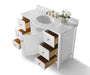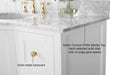 Daring proportions. The Lauren Collection showcases Ancerre Designs skill in pushing curve tolerance to perfection.  From selecting quality wood to using the most durable soft-close hardware, no details were overlooked in crafting the Lauren vanity set. The vanity set includes a furniture style cabinet, imported Italian Carrara White marble or White Quartz top with a 4 inch backsplash, oval undermount basin, solid wood drawer boxes, soft-close doors & drawers and brushed hardware. Complete the look with our mirrors which are sold separately.