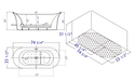 EAGO 74" White Free Standing Oval Air Bubble Bathtub AM1900