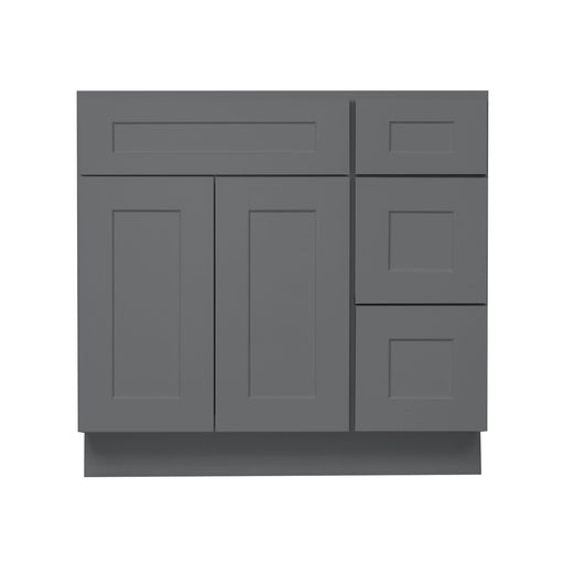 View full details36 Inch Grey Shaker Single Sink Bathroom Vanity with Drawers on the Right