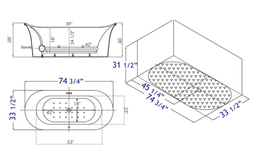 EAGO 74" White Free Standing Oval Air Bubble Bathtub AM1900 Features This free-standing oval tub can be...