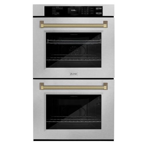 ZLINE Autograph Edition 30" Professional True Convection Double Wall Oven, Air Fry, Self Clean, Stainless Steel, Helix Handles WADZ-30-KCB