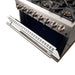 The Forno Capriasca 36-Inch dual fuel range enhances your home kitchen with its durable 304 grade stainless steel design. Featuring 6 sealed dual-ring brass burners with a total output of 120,000 BTU. The 20K dual-ring burner is perfect for boiling or searing and can also handle tasks like melting chocolate or simmering sauces. Continuous heavy-duty cast-iron grates allow for easy sliding of pots or pans off heat when desired. The 5.36 cu.ft. true convection fan oven boasts a blue enamel interior for easy cleaning and a 3-layer glass oven door window for heat retention and a clear view. With a total output of 6,300 Watts, this oven provides ample power for baking, roasting, and broiling. Included are 3 fully telescopic easy-access stainless steel oven racks, concave wok ring, a LP conversion kit. Additionally, zinc-coated metal knobs with bezel rings ensure lasting beauty.