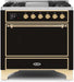 ILVE Majestic II 36" Dual Fuel Range Glossy Black Brass Trim UM09FDQNS3BKG