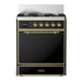ILVE Majestic III 30" Dual Fuel Range, Glossy Black Brass Trim UM30QNR3BKG
