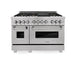 ZLINE 48" Dual Fuel Range, DuraSnow Stainless, Brass Burners, Griddle RAS-SN-BR-GR-48