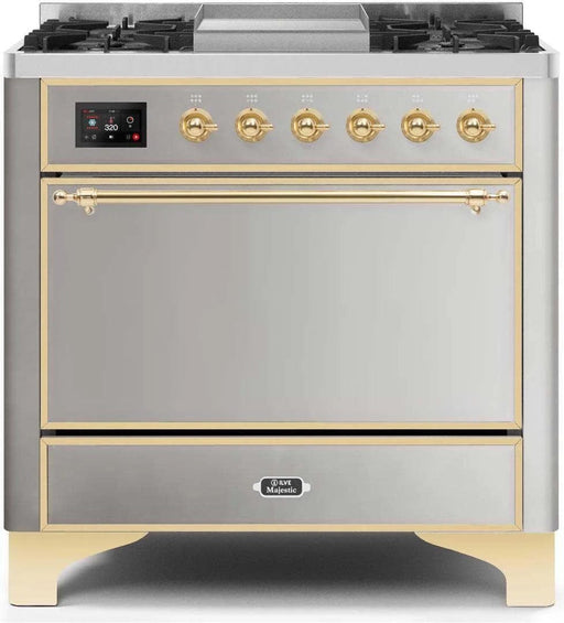 View full detailsILVE Majestic II 36" Dual Fuel Range Stainless Steel Brass Trim UM09FDQNS3SSG