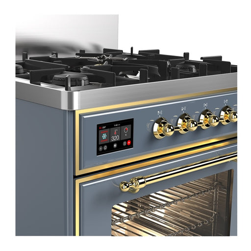 View full detailsILVE Majestic III 30" Dual Fuel, Natural Gas Range, Blue Grey, Brass Trim UM30NR3BGG