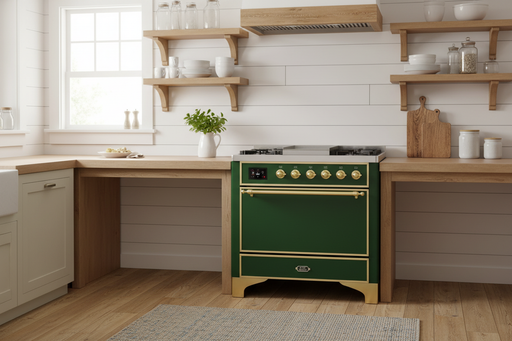 View full detailsILVE Majestic II 36" Dual Fuel Range Emerald Green Brass Trim UM09FDQNS3EGG