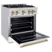 ZLINE 30" Classic Gas Range, Convection Gas Oven Stainless Steel, White Matte Door Champagne Bronze CGRZ-WM-30-CB
