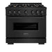 ZLINE 36" Classic Gas Range, Convection Gas Oven Black Stainless Steel Brass Burners, CGRB-BR-36