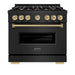 ZLINE 36" Classic Gas Range, Convection Gas Oven Black Stainless Steel, Champagne Bronze CGRBZ-36-CB