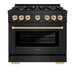 ZLINE 36" Select Gas Range Convection Gas Oven Black Stainless Steel Gold HGRBZ-36-G