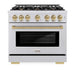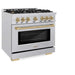 ZLINE 36" Select Gas Range Convection Gas Oven DuraSnow® Stainless Steel Champagne Bronze HGRSZ-36-CB