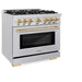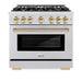 ZLINE 36" Select Gas Range Convection Gas Oven DuraSnow® Stainless Steel Gold HGRSZ-36-G