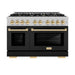 ZLINE 48" Select Gas Range  Convection Gas Oven DuraSnow® Stainless Steel Black Matte Door Gold HGRSZ-BLM-48-G