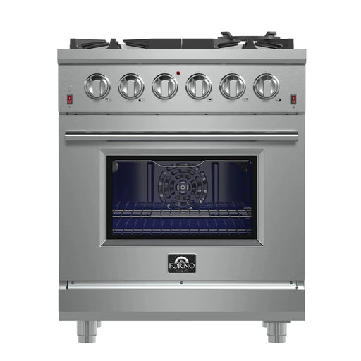 FornoFORNO Massimo 30″ Gas on Gas Range FFSGS6239-30 The Forno Massimo 30 Inch Gas Range harmonizes professional style and 304-grade stainless steel du...