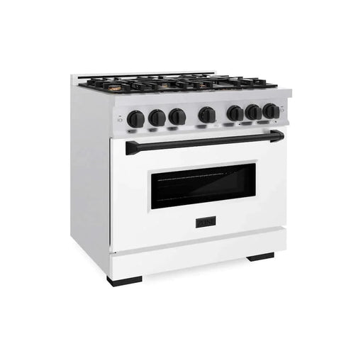 View full detailsZLINE 36" Classic Gas Range, Convection Gas Oven Stainless Steel, White Matte Door Matte Black CGRZ-WM-36-MB