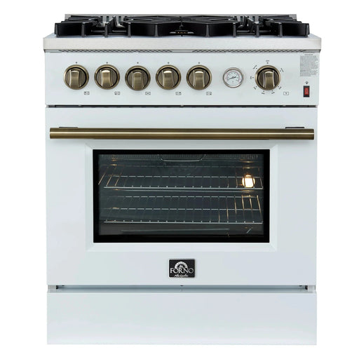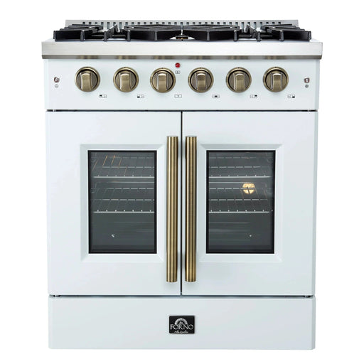 View full detailsForno Galiano 30" French Door Gas on Gas Range White Antique Brass Trim FFSGS6444-30WHT