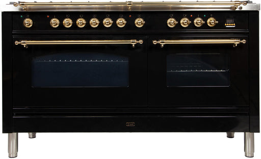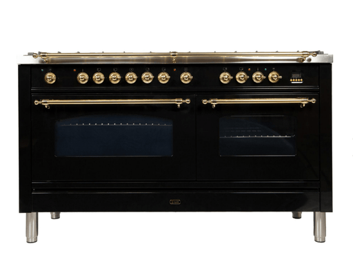 ILVE Nostalgie II 60" Dual Fuel Natural Gas Range, Stainless Steel, Brass Trim UP60FSNMPSSG