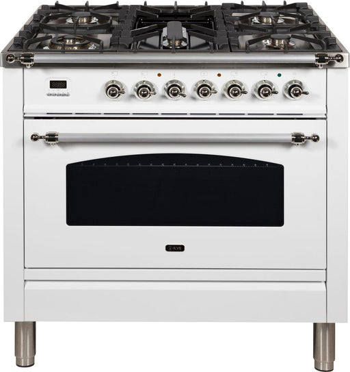 ILVE Nostalgie II 40" Dual Fuel Natural Gas Range, White, Bronze Trim UPD40FNMPWHB