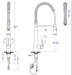 • Commercial style kitchen faucet with spring and arm to hold the head, which can be pulled down to wash large areas.