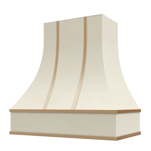 View full detailsAntique White Range Hood With Curved Front and Brass Strapping - 30", 36", 42", 48", 54" and 60" Widths Available