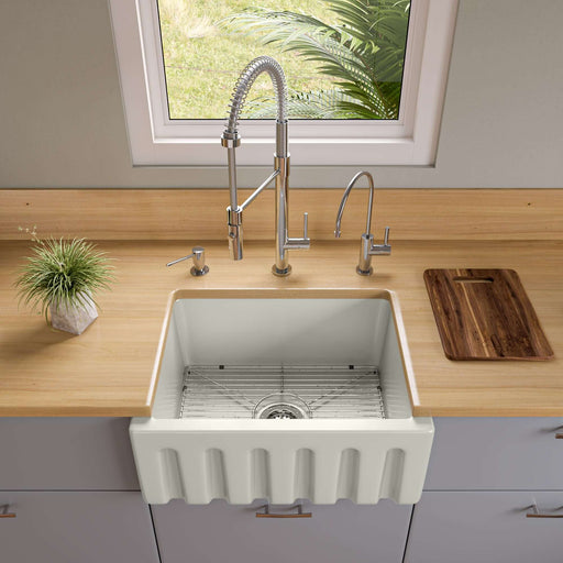 View full detailsALFI brand 24" Reversible Smooth / Fluted Single Bowl Fireclay Farm Sink AB2418HS