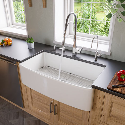 View full detailsALFI Brand White Smooth Curved Apron 36" Single Bowl Fireclay Farm Sink ABFC3620S-W