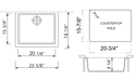 • Recommended counter top cut out hole of 20 3/4" x 15 7/8" with a 1/4" corner radius.
