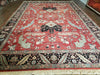 10' X 14' Vintage Hand Made Turkish Wool Rug Carpet Red Black Hand Knotted Nice