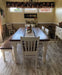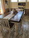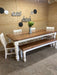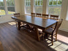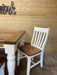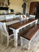 They can be stained to match your table, painted black with the seat stained to match the table or painted white with the seat stained to match the table.
