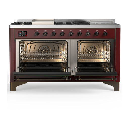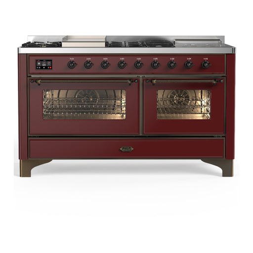 View full detailsILVE Majestic III 60" Dual Fuel Range, Burgundy, Burnished Trim UM60FSQNR3BUB