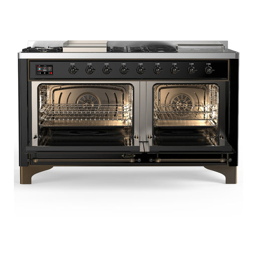 View full detailsILVE Majestic III 60" Dual Fuel Range, Glossy Black, Burnished Trim UM60FSQNR3BKB