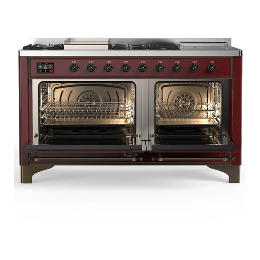 View full detailsILVE Majestic III 60" Dual Fuel Range, Burgundy, Burnished Trim UM60FSNR3BUB