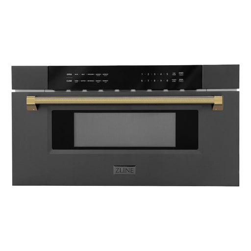 ZLINE Autograph Edition 30" Built-in Microwave Drawer, Black Stainless Steel, Helix Handle MWDZ-30-BS-KCB
