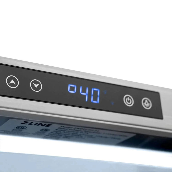 ZLINE 24" Touchstone Dual Zone 44 Bottle Wine Cooler Black Matte Glass Door Polished Gold Handle RWDOZ-BLM-24-G