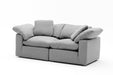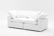 The 2 Cube Loveseat, featuring elegant White, Champagne Velvet, Natural Linen, Fog Grey, Charcoal, Roasted Chestnut Vegan Leather, Alpine Steel Vegan Leather, and Black Velvet. This chic pair effortlessly blends contemporary design and comfort, ideal for versatile seating in cozy spaces.