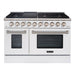 Akicon 48" Slide-in Freestanding Professional Style Gas Range with 6.7 Cu. Ft. Oven, 8 Burners, Convection Fan, Cast Iron Grates. White & Copper