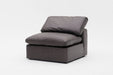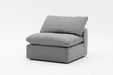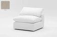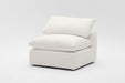 The Armless Soulfa Cube in Elegant White, Champagne Velvet, Natural Linen, Fog Grey, Charcoal, Roasted Chestnut Vegan Leather, Alpine Steel Vegan Leather, and Black Velvet. This chic piece blends style and functionality, offering modern design and comfort. Elevate your space with this versatile seating solution.