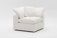 Introducing the Soulfa Corner Cube – an elegant seating solution in White, Champagne Velvet, Natural Linen, Fog Grey, Charcoal, Roasted Chestnut Vegan Leather, Alpine Steel Vegan Leather, and Black Velvet.